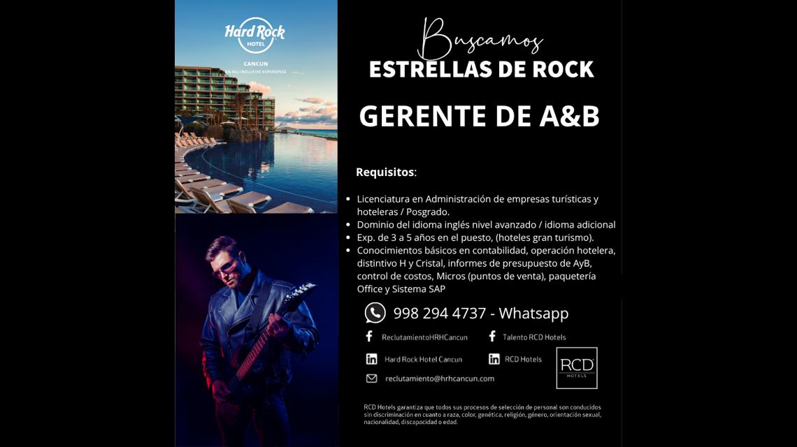 Gerente Alimentos y Bebidas Hard Rock Hotel Cancun - Hard Rock Hotel Cancun