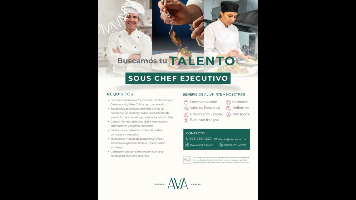 Sous Chef Ejecutivo - AVA Resort Cancun
