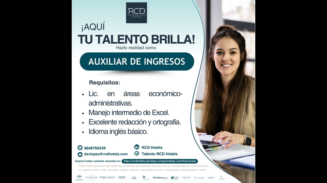 Objetivo: Serás responsable de brindar apoyo al equipo de Ingresos Corporativo en la gestión, configuración y control de los procesos relacionados con el registro contable de ingresos, asegurando la correcta integración entre los sistemas operativos de los hoteles (PMS) y el ERP corporativo, así como contribuirás en proyectos estratégicos como aperturas de nuevas propiedades, implementación de sistemas y procesos de facturación y pago de comisiones