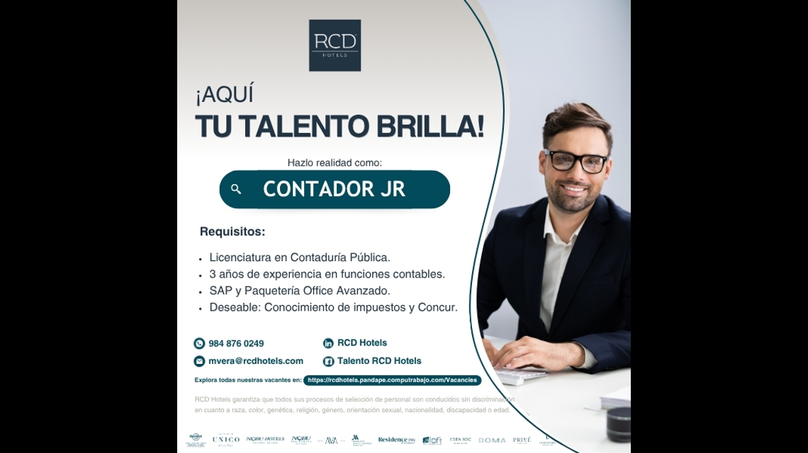 En RCD Hotels brindamos igualdad de oportunidades respetando identidad y expresión de género, sin distinción de edad, raza, religión, nacionalidad, ascendencia, embarazo, discapacidad, afección médica, estado civil, orientación sexual, etc. Celebramos con entusiasmo la diversidad de nuestro equipo y creemos que el talento, la pasión y la experiencia son los únicos criterios relevantes para considerar para nuestros nuevos talentos