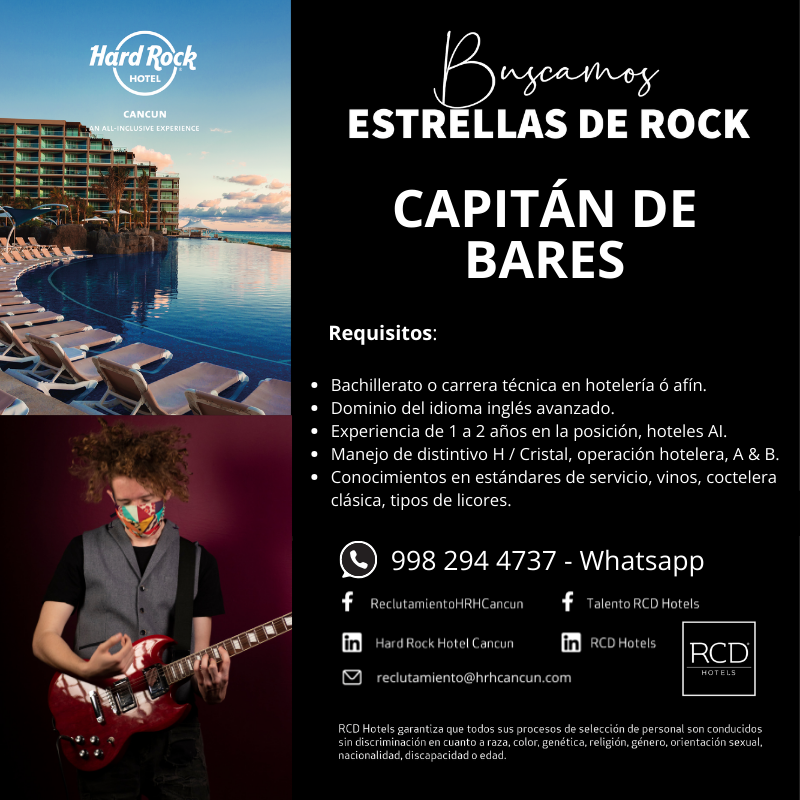 Estamos en búsqueda de tu talento como: CAPITÁN DE BARES.